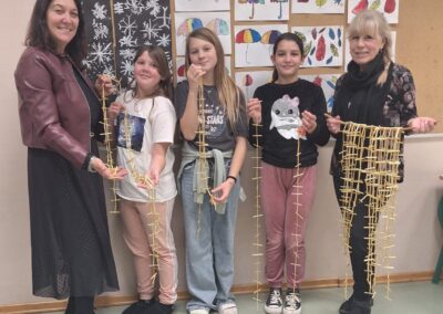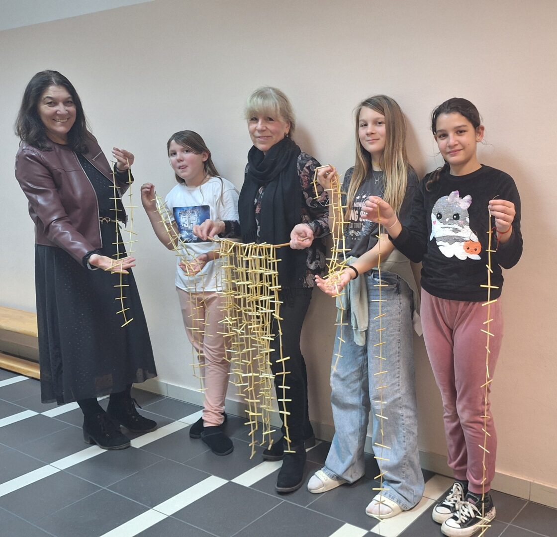 Ovog tjedna održana je još jedna vrlo zanimljiva radionica u našoj školi. Ovaj put bila je to radionica izrade lančića od slame koju je vodila gđa. Ksenija Virgej.Polaznicima grupe Kotoripska baština gđa. Ksenija Virgej pokazala je način izrade pravog tradicijskog ukrasa/kinča. Učenici petog razreda i voditeljica grupe Kotoripska baština Danijela Sabol okušali su se u izradi pravog tradicijskog kinča kojim su Kotoripčani nekad ukrašavali jelke na Badnjak. Izrada lančića od slame druga je po redu radionica koju je u našoj školi održala gđa. Ksenija Virgej kako bi se sačuvalo od zaborava naše pravo kotoripsko tradicijsko blago i prenijelo na mlađe naraštaje. Učiteljica, a i učenici uspješno su napravili više lančića od slame koji će krasiti i našu školsku jelku te su na kraju zanimljive radionice ponosno pokazali svoje uratke.