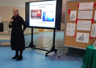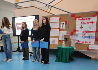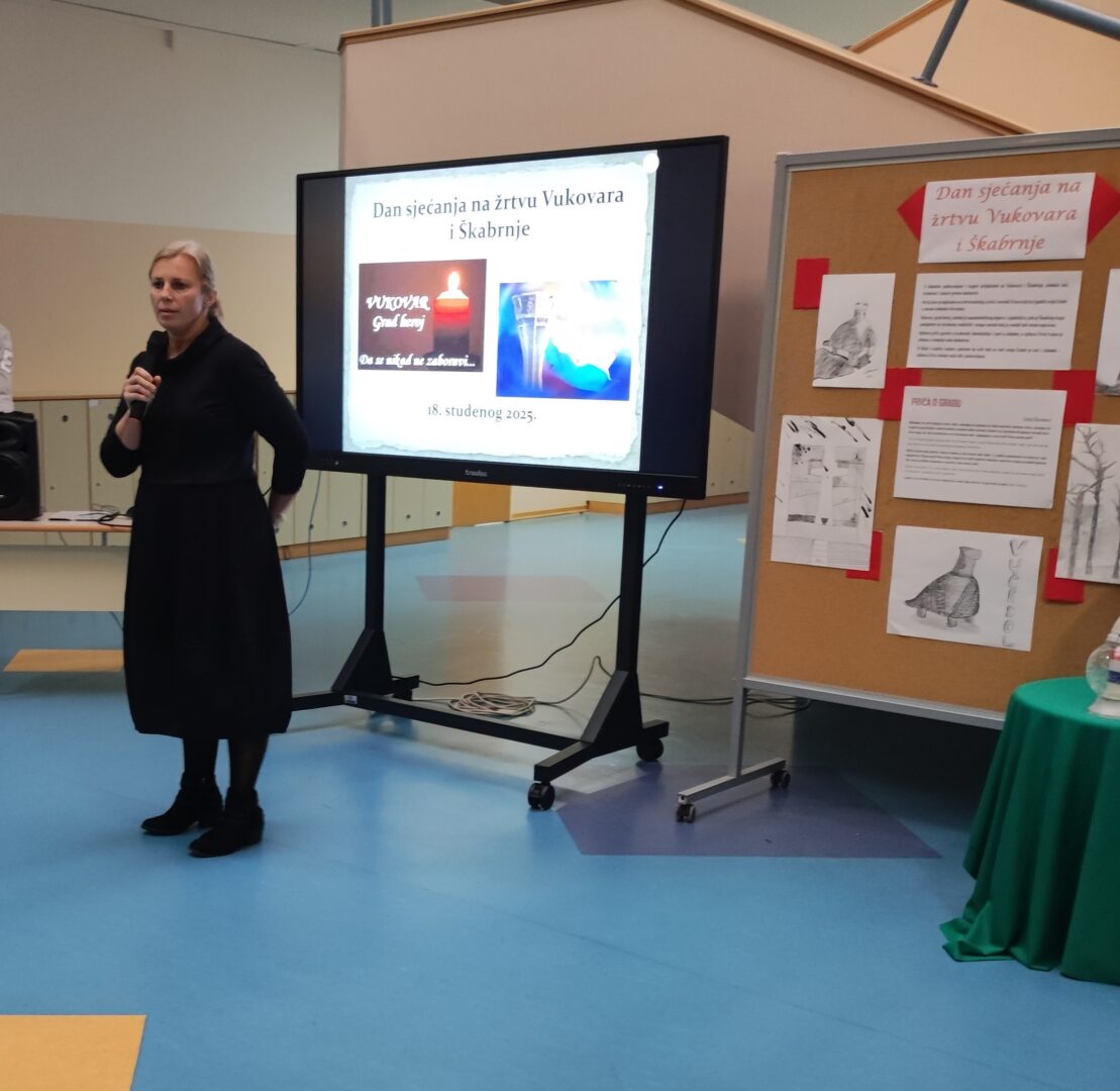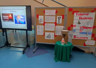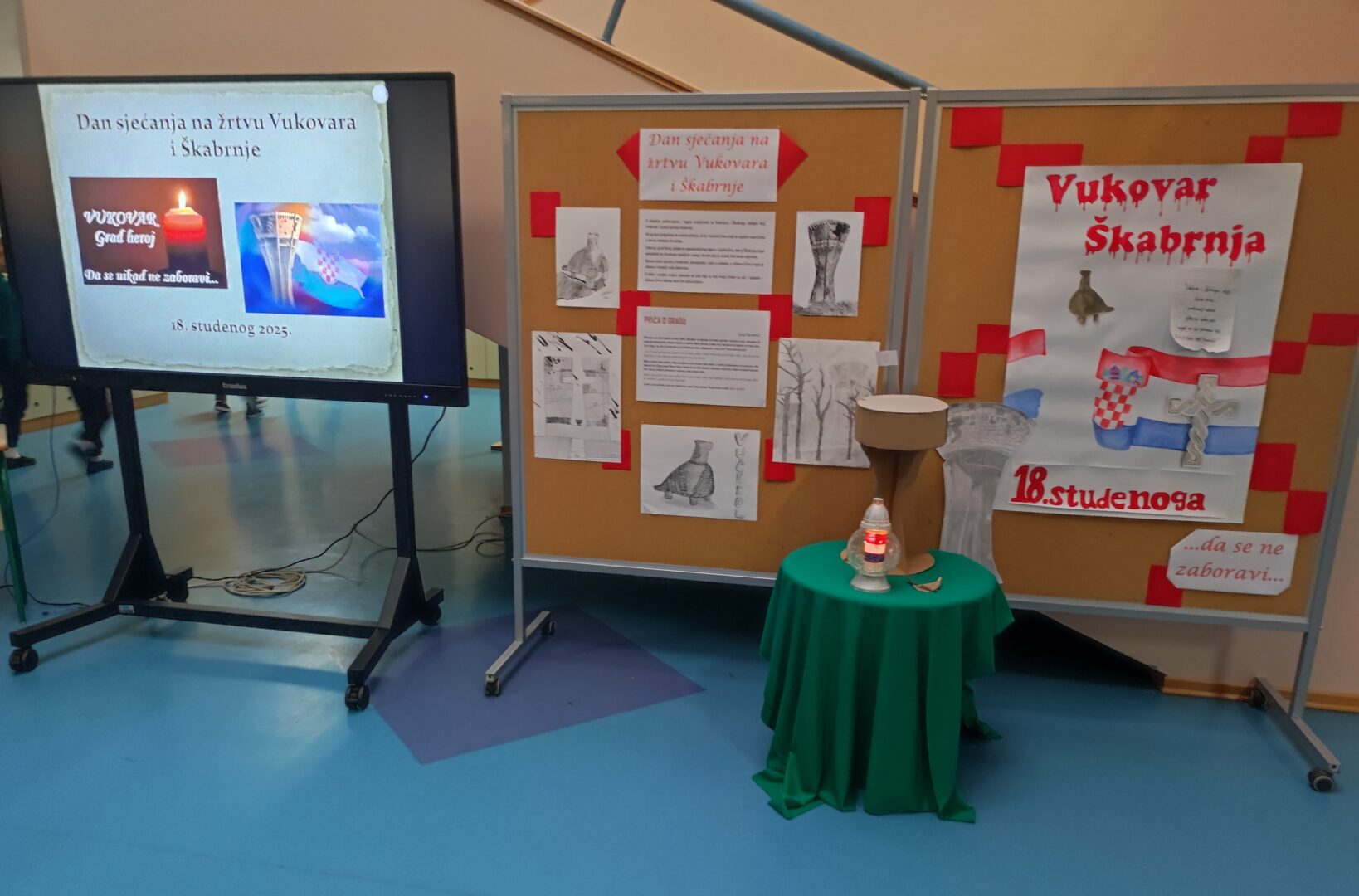 U našoj školi obilježen je Dan sjećanja na žrtve Domovinskog rata te Dan sjećanja na žrtvu Vukovara i Škabrnje – dan koji nas podsjeća na hrabrost, stradanje i zajedništvo hrvatskog naroda. Svečanost se održala u školskom hodniku gdje su se okupili svi učenici i učitelji kako bi odali počast onima koji su izgubili živote u Domovinskom ratu. Organizaciju programa provela je učiteljica povijesti Melita Sečan-Hrastić, učenice 8. razreda je pripremila učiteljica hrvatskog jezika Nikolina Fuš Zvošec, dok je prigodan pano izradila učiteljica Martina Leskovec.