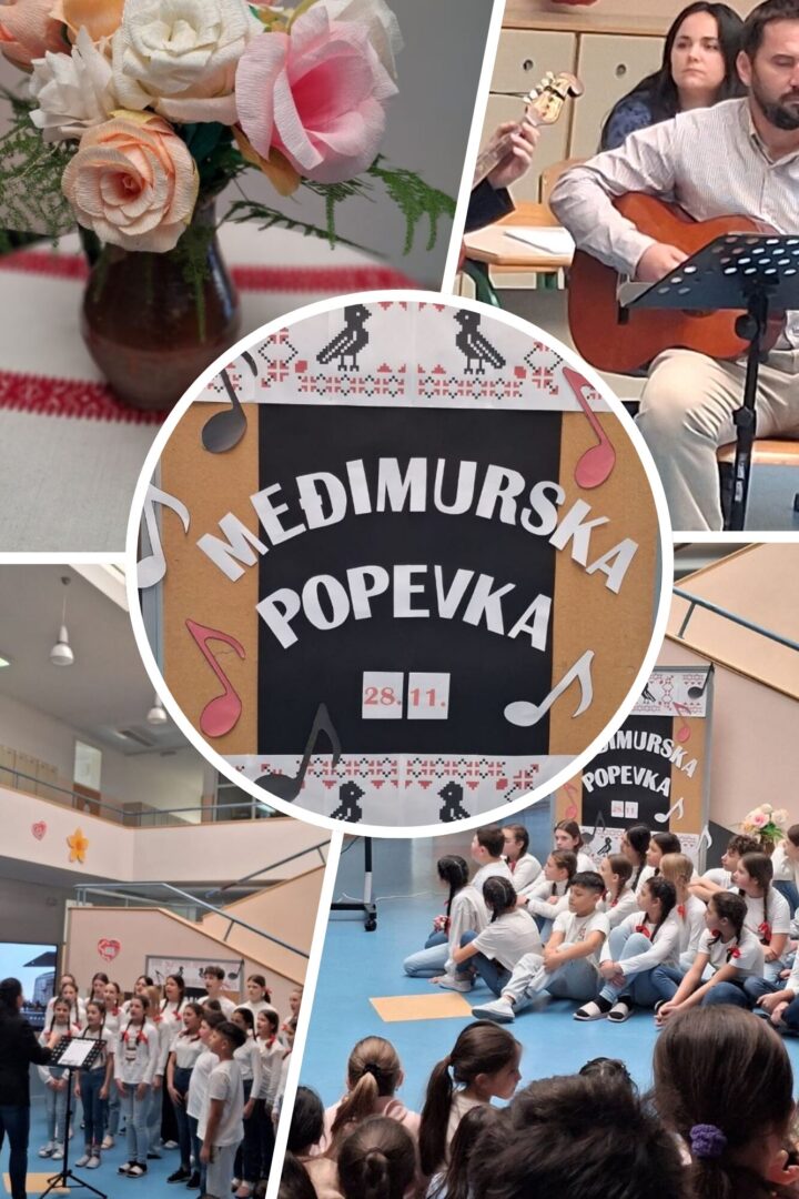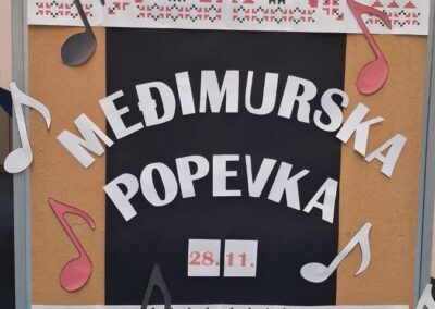 U holu naše škole danas smo svečano obilježili  Dan Međimurske popevke koji se slavi upravo 28. studenoga, dan kada je ovaj dragocjeni glazbeni izraz našega kraja uvršten na UNESCO – ov popis nematerijalne kulturne baštine.