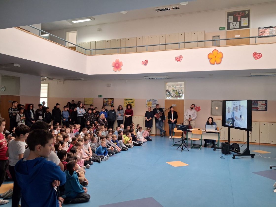 Vokalna skupina učiteljica naše škole izvela je staru Međimursku popevku  „ Goslice su potrte“, a cappella,  čiji je nastup popraćen velikim pljeskom. Potom je nastupio pjevački zbor višeg uzrasta koji je izveo tri posebno lijepe međimurske pjesme: „Mamica su štrukle pekli“, „Klinček stoji pod oblokom“ i „Ljubav se ne trži“. Zbor su pratili učitelj Robert Katanec na gitari i učitelj Dino Lesjak na braču, dodatno obogativši izvedbu.